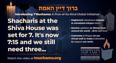 Baltimore, MD – Mar. 23, 2026 – BJL regrets to inform the community of the petira of Mrs. Rachel Arel Mishory, a’h, wife of Dr. Mordechai Mishory, mother of Eliezer (Dassi) Mishory, and sister of Patricia, David, and Sue (Kevin).Shiva will be observed at 3211 Bancroft Road, Baltimore, Maryland 21215.Shacharis: 9:30AMMincha/Maariv: 7:05PM