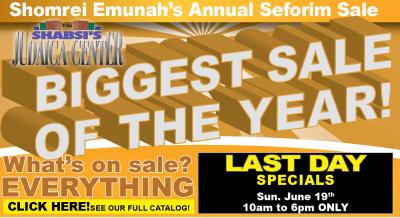 Baltimore, MD - June 19, 2022 - Today is the final day of Shabsi's Biggest Sale of the Year. Visit now for amazing specials. Click on the graphic below for a full catalog of sale items.
