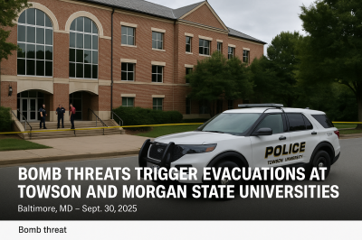 Baltimore, MD - Sept. 30, 2025 - Officials at Baltimore-area universities are investigating threats received to their campuses.
