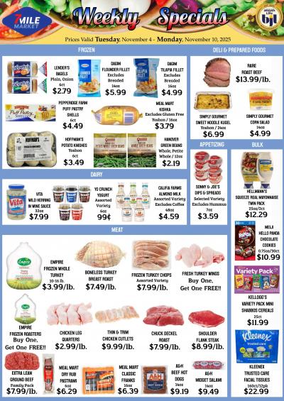 Seven Mile Market Specials in Effect Tuesday, Nov. 4 - Monday, November 10, 2025