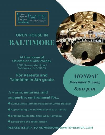 4. WITS Yeshiva to Hold Open House for Baltimore Families on December 8