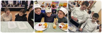 After lunch and continued learning, the school held a grand Yud Tes Kislev Seder Nigunim — a first-of-its-kind event organized and led entirely by Kitah Ches. With the lights dimmed and special tables set for each grade, the atmosphere was transformed. Music was led by Leivik Pewzner on keyboard and seventh-grader Mordechai Stolik on flute. Narrators Zalman Kaplan and Menachem Levin explained what a Seder Nigunim is and shared the meaning and uniqueness of each niggun. The singing was led by baalei menagnim Shmuli Bukiet and Lipa Shapiro, creating an uplifting and deeply moving experience. A special thank-you was extended to the many fathers who joined the students for this meaningful celebration.