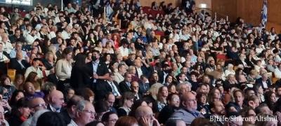 An impressive torch lighting ceremony launched the night program, as Rabbi Doron Perez walked into the International Conference Center with a torch and proceeded to the stage.
