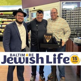 (L-R) Rabbi Yankee Barron-Chabad of Columbia, MD, Oren Yesko, and Market Maven Store Manager Eli Siegel